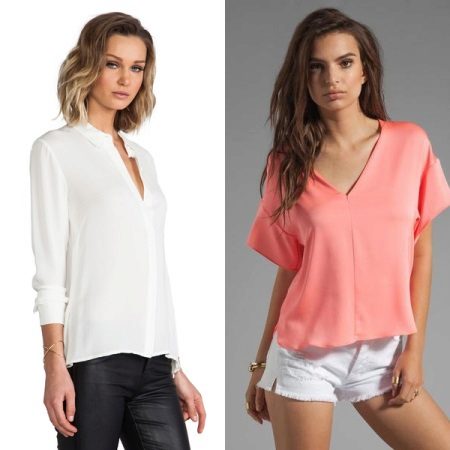The most popular is the V-neck, which allows you to emphasize the graceful female neck. Blouse models with such a neckline can have both long and short sleeves.