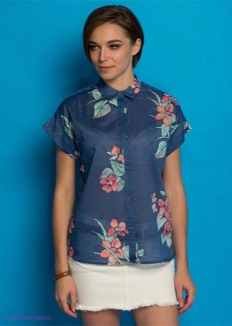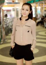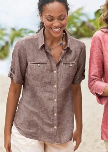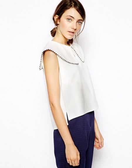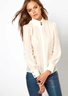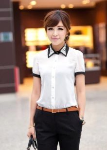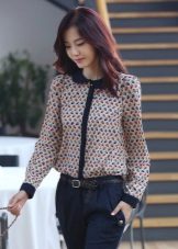 The collars of such blouses can be in the same color scheme, for example, a brown body shirt with a turn-down collar and buttons on the bar. And it may differ from the blouse itself, for example, a leopard print blouse with a white turn-down collar. Such models look advantageous.