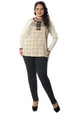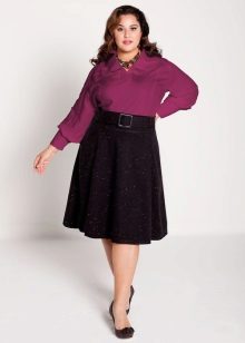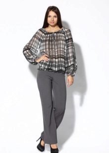 Light tones of blouses are best for full girls. So they visually make their silhouette less clear, for example, pink or beige blouses