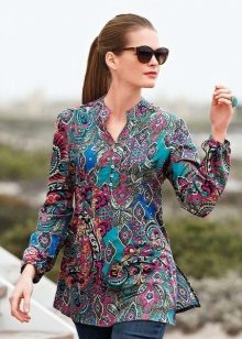 Elongated blouse made in a free cut. The neck of such models is most often round. You can wear it with a belt to emphasize the waistline.