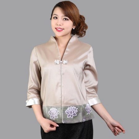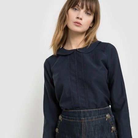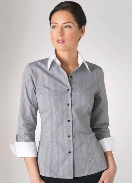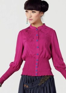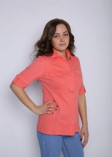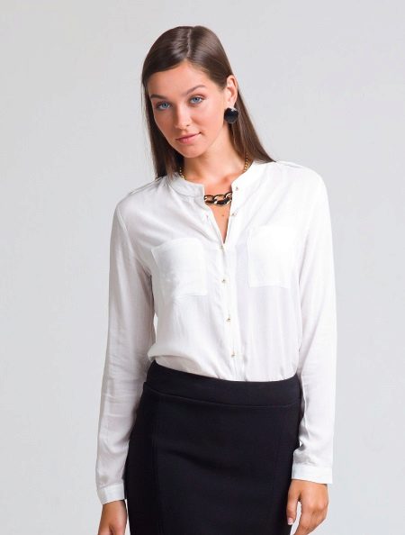 Adjoining blouse with polo collar. Buttons can be sewn on the collar plan. There are models in which there are no buttons on the collar.A small pocket, made as a decor on such blouses, can be the same color with a blouse. Sometimes the manufacturer’s logo is embossed on the pockets.