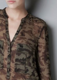 This style has become a favorite among famous designers for several seasons in a row. Grace and brutality in one image - this is the military. The characteristic palette of colors is brown, black, dark beige and khaki. The decor on military-style blouses includes buttons, cufflinks, stand-up collars, shoulder straps and pockets. Most often, in such blouses, the shoulders are cut wider than the bottom.