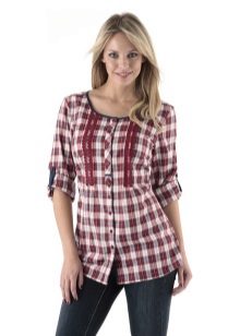 Blouses, shirts in bright colors do not give up their positions. Striped, small or large cage - all are also relevant this season. For example, a small black and white check shirt blouse would be a good choice for a casual style.