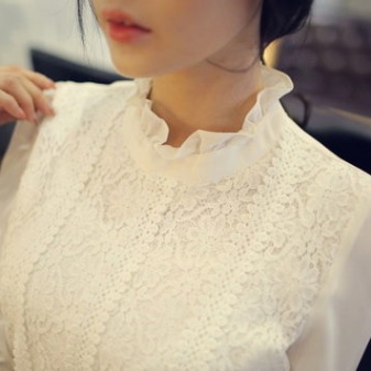 Volumetric shuttlecocks can be of various lengths: short or reach the chest. The frill collar can be an integral element of a blouse, or it can be removable.