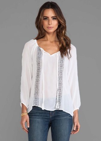 The embroidery looks unusual and original. Special. If it is made in a certain style, for example, in Russian folk. Increasingly, you can find ethnic embroidery on blouses, for example, mandalas.