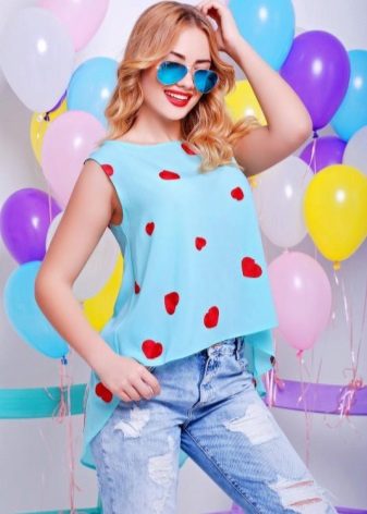 There are blouses in the style of casual without sleeves or with short sleeves, which is especially relevant for the summer period.