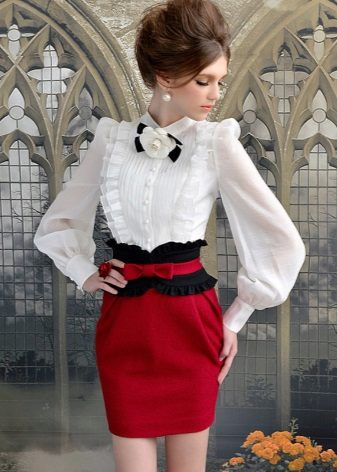 Such blouses are most often fitted or fitted. Sleeves can be long or ¾. It is important that they are narrow, then the basque will become a spectacular addition, emphasizing the line of your waist.
