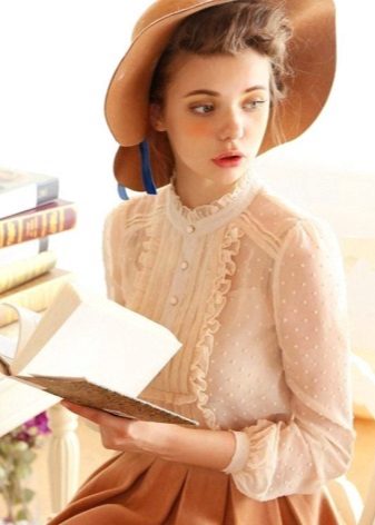 Such blouses are most often adjacent. Can be with or without a collar. Decorated elements in the form of sleeves, for example, a flashlight sleeve, add romance to this style. The romantic style implies elegant, calm colors and prints "polka dot" or floral print.