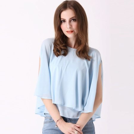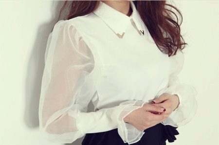 Such models can be with or without collars, with buttons on the bar. Most sleeve blouses are made of chiffon, silk or satin.
