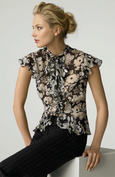 The drawing is also called a print. Such blouses can become part of an office bow or casual style. It all depends on the model of your blouse. Prints can be made in various colors. They can be floral, imitate the coloring of animals, for example, a leopard.
