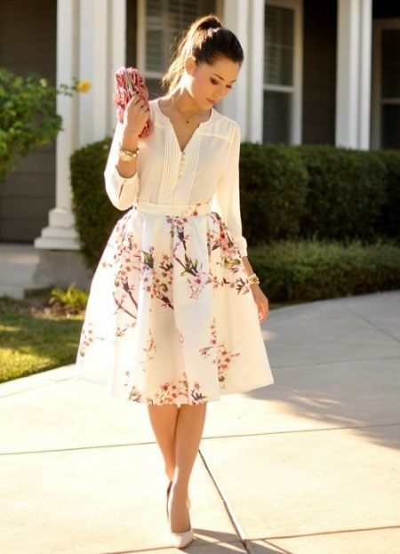A blouse is a universal thing in a basic wardrobe. Feel free to wear it with skirts of different lengths and styles. The classic combination is a blouse and a skirt.