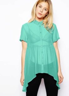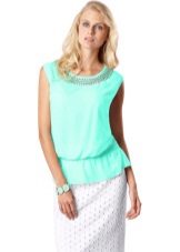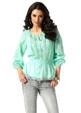 Slender, graceful girls can try on almost any styles of mint blouses, including cropped models, blouses with bare shoulders, transparent blouses, etc.