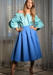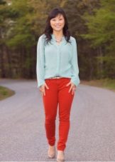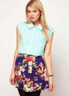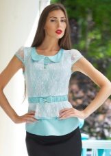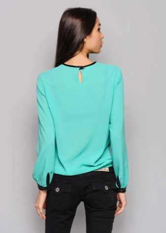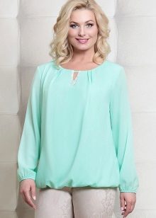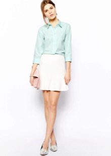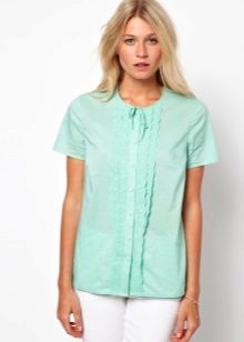 To create a romantic look, a blouse of a shade of delicate mint with sleeves-lanterns, frills and ruffles is suitable.