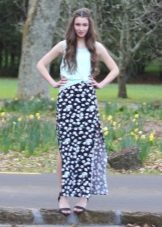 A set of a transparent blouse and a skirt made of satin, guipure or dense silk will help to create an elegant evening look. Complete the image of shoes in the tone of a blouse or skirt, a miniature handbag and laconic jewelry.