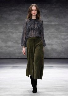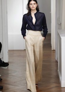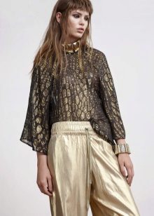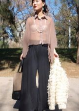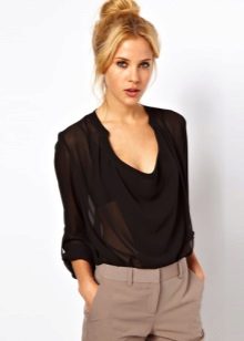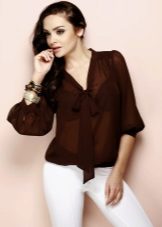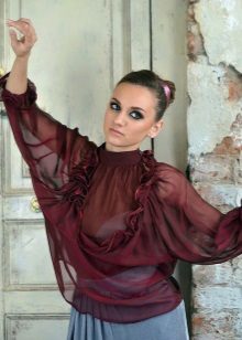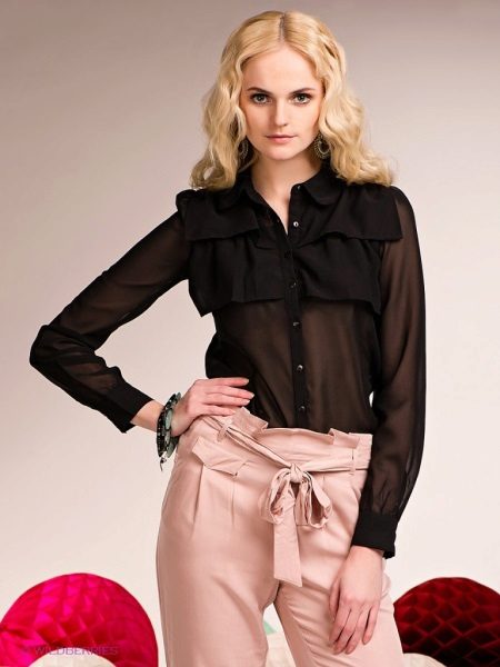 Sheer blouses with long sleeves are the most versatile option. They are suitable for any season, able to hide the imperfections of the figure, flowing fabric and an elongated model visually stretch the image.