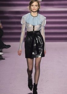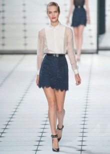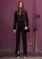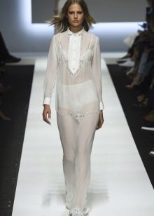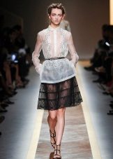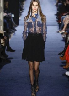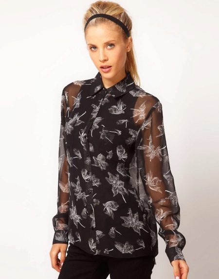 The presence of a strict collar in this model creates a business style and goes well with an office jacket or jacket. To create a more modest image, fashion designers complement the transparent blouse with interesting elements - tight inserts or pockets in the chest area.