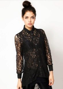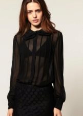 Elongated models of black transparent blouses, complemented by decorative elements (tie, ruffles, peplum, pockets or even embroidery) are more universal, they fit perfectly into the business, romantic and evening style.