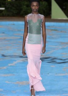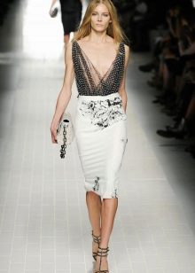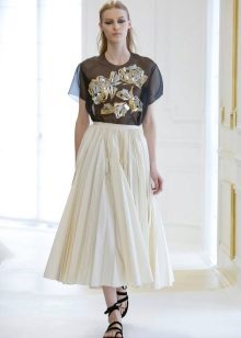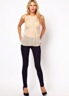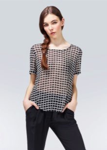 Under a transparent blouse, you can wear a top, T-shirt or bustier. Lower products should not be textured or contrasting - the main thing is to create the most neutral background.