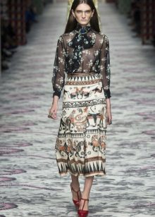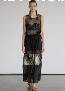 Transparent products with various prints look very unusual. The pattern on the fabric can be contrasting or in the color of the product. Transparent tunic blouses, free cut with multi-colored patterns on the fabric - undoubtedly, the highlight of the summer look for relaxation or evening ensemble.