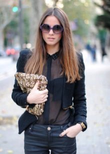 And one more important rule. A transparent blouse is a very bright element in itself. Try to play the leading role in the overall picture of your image. Do not combine such a thing with other explicit elements and overload with additional accessories.