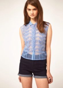 If your wardrobe has a denim overalls - feel free to wear a transparent blouse under it. This combination will soften the image and add femininity. Casual youth style allows you to combine blouses in bright colors with shorts, capri pants, mini and maxi skirts. A combination of light blouses and leather pants or shorts will be very stylish.