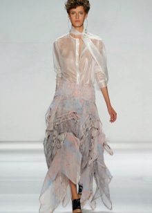 Due to the fact that the transparent fabric is beautifully draped, and in the fashion of recent years both concise and original complex models successfully coexist, designers offer a huge number of models of transparent blouses