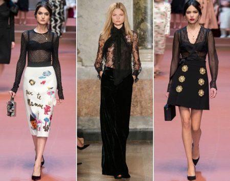 And finally, the most popular color is black. Black blouses made of lace fabric look glamorous and sexy. Such blouses often make a tight-fitting silhouette - but only a bold and confident woman can decide on such a fashionable experiment.