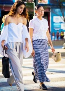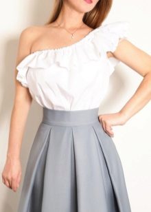 An asymmetric one-shoulder blouse is not as popular as previous models, but the fashion is changeable, so it is also worth mentioning. This blouse is comfortable to wear, but it looks interesting and flirty. Like a strapless blouse, it suits girls with perfectly crafted hands.
