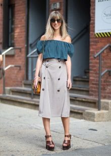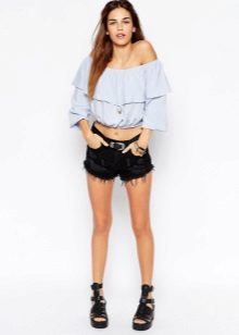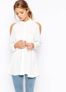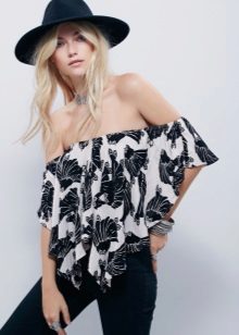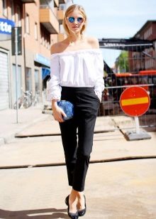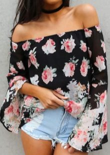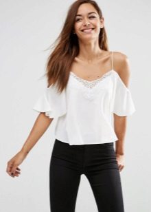 Such a model is an interpretation of one of the fashion trends. It is perfect for girls with a triangle shape who should not completely expose their broad shoulders. However, such a blouse is suitable for everyone else.