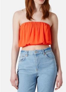 Strapless blouses have the basis of a corset or bando, because they tightly fit the body under the armpits. This blouse is ideal for publication, because it looks elegant and luxurious. Often there are Basque models that give the product a special charm.