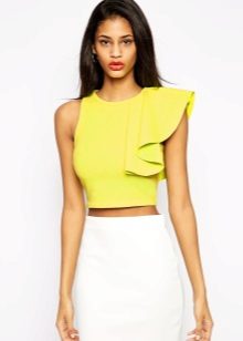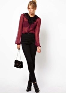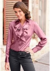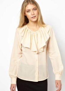 Choosing the right combination, pay attention to color combinations. If the blouse with frill is monophonic, then the bottom can be both monochrome and colorful. But for multi-colored models of such blouses, only a plain bottom is recommended, which will be represented by one of the shades on the blouse.