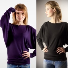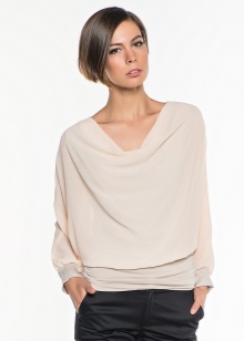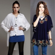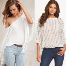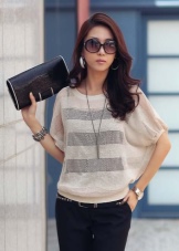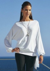 Things in the style of a bat, with loose lowered sleeves, sit freely and do not constrain movements. Such models, thanks to the soft curves of the fabric, make the image more feminine and delicate. They give special emphasis to the hands of girls. A loose fit is suitable for any type of figure; both thin and larger women will appreciate it.