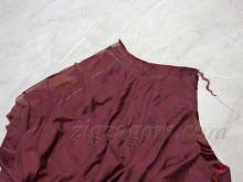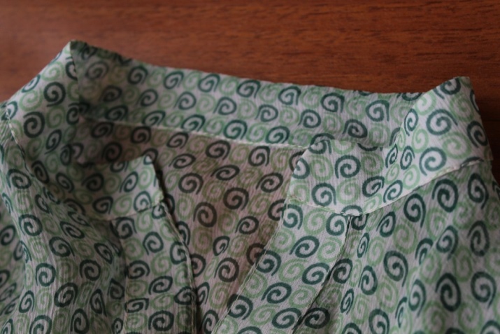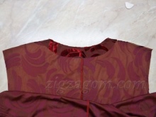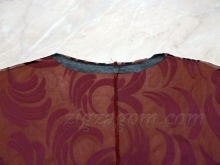 - Overcast a section of the neck with a tight, narrow zigzag. Iron the allowance on it inside out, lay a small dense zigzag line along the front side, cut off the excess allowance from the inside.