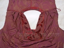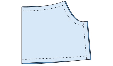 - Sew the combined edges of the facing in both parts using a single seam using an overlock. Turn the hem along the back part inside out, align the seams at the shoulders and manually fix it.