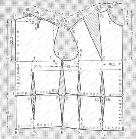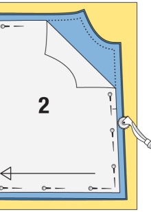 - To trace the back part of the pattern entirely, excluding the neck - it needs to be drawn in a different way and additionally build a drawing for the stand collar.