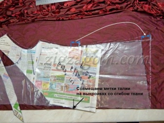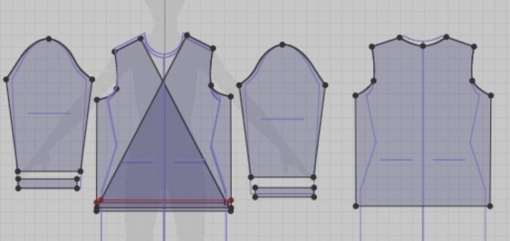 - The third - on both halves of the pattern pattern, it is necessary to build volumetric seams with a relief, since all parts of the tuck, chest and waist, will hide in them.