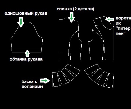In order to independently make a pattern of a blouse, which includes a peplum with shuttlecocks, it will not take much effort - even beginner seamstresses are capable of this. Modeling takes place on a pattern-based dress.