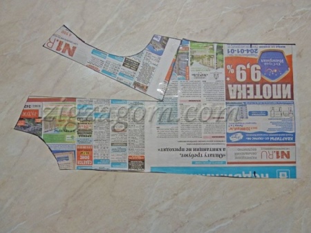 - From the middle of the neckline measure 12 cm down. Draw a 3 cm wide bar, cut and close it separately from four parts.