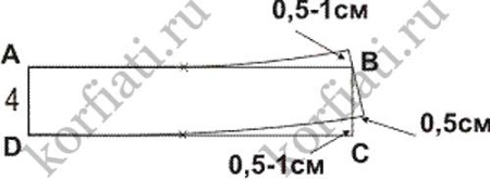 - The sides MK and NP are the sum of the length of the back to the waist and 18 cm, regardless of size. For example, at 40 cm specified in the parameters, the length of the sides will be 58 cm.