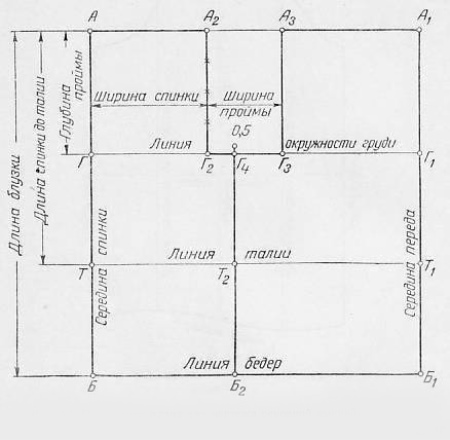 Knowing how to build a basic pattern for cutting fabric onto a blouse will open the way for sewing more complex models with sleeves and various additional decorative elements. Before you start building a pattern, you need to measure the following parameters (the numbers are shown for example and for clarity when building a drawing step by step):
