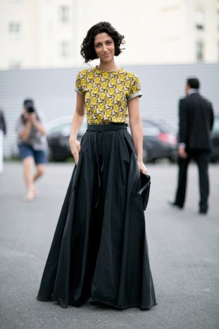 - Black + yellow = a win-win combination. Such an image is a classic, whether it be a skirt or trousers.