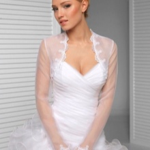If the bolero is made of light translucent materials, then it risks being in the dress of the bride. You can choose a simple wedding dress, but complement it with a chic bolero - the result will exceed all expectations.