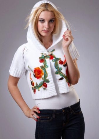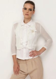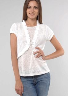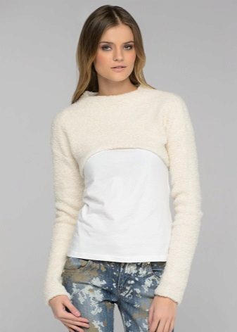 In the wardrobe, it is desirable to have a white bolero, which with any clothes will look harmonious. A white knitwear option along with a turtleneck or fitted top is a great option for creating an urban look.