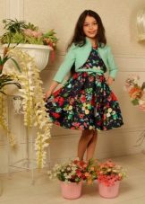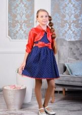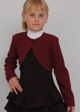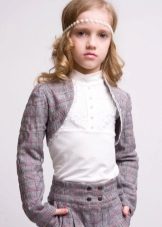 Bolero for a girl can imitate a two-piece suitif you wear it with a dress suitable or vice versa, a contrasting color or complete with a skirt, as in collections for quite adult women from eminent couturiers.