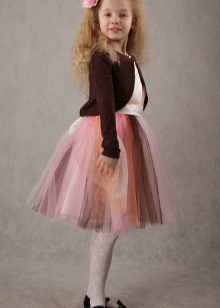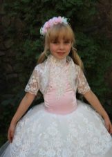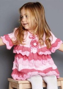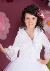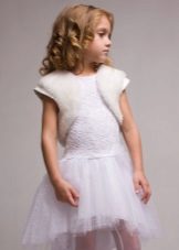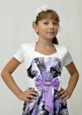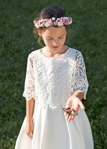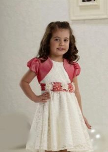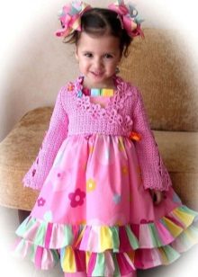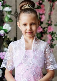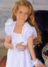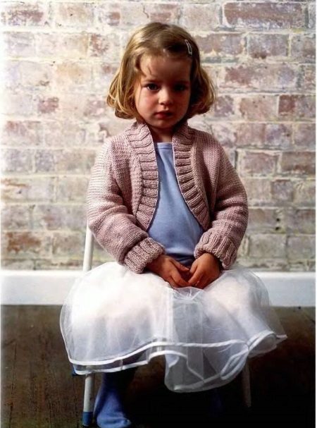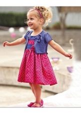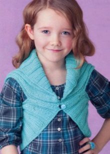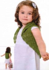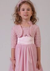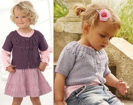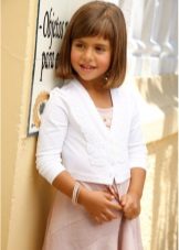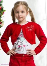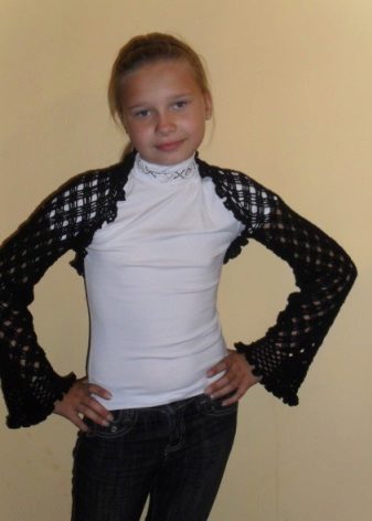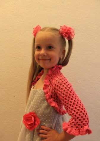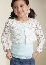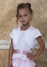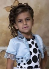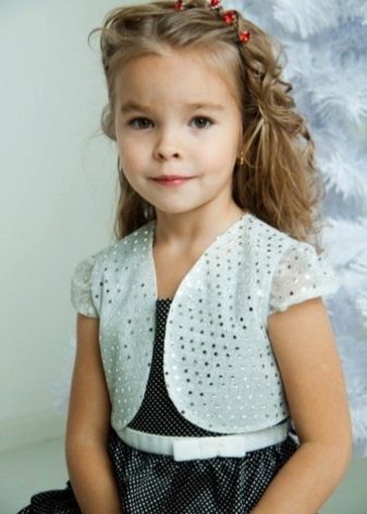For kindergarten, that is, for girls 3-4 years old, a combination of bolero, turtleneck and sundress made of thick fabric is perfect. For a stylish photo shoot, the little princess of 5-6 years old can be dressed in a luxurious lace blouse and a velor set of short-sleeved bolero and flared skirt on a fluffy petticoat with lace trim. For schoolgirls 7-10 years old, a t-shirt, bolero with knotted floors and jeans will be an excellent everyday option.