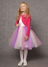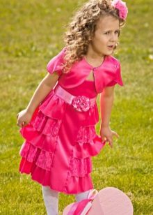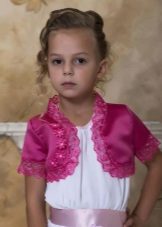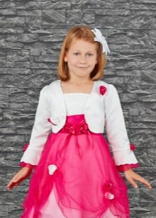 It is not at all necessary that the bolero should match the basic clothes in color, the contrast option will look spectacular, and if you want to help the little lady learn how to dress stylishly, you can offer to choose one color for all things, but each of them has a different shade.