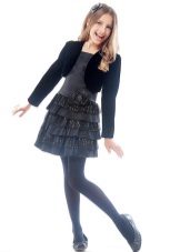 A distinctive feature of the bolero is also the fact that not being an obligatory element of the wardrobe both an adult woman and a girl, its presence makes it easy to transform a casual outfit into a festive one. Put on a plain thick plain dress a contrasting elegant bolero, put on nice shoes and braid the original braids - you will see how the image of a young fashionista will radically change.
