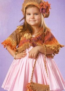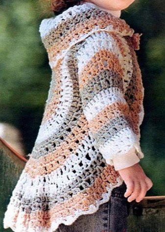 - comfortable for daughter, calm for mom - a non-standard bolero model knits in a circle of yarn of three colors: this will not happen to anyone else.