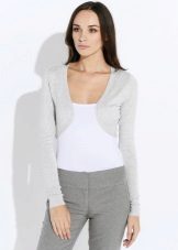 - Bolero as part of everyday wardrobe. Variations on the theme of short jeans, sweaters and sweatshirts, as well as sweatshirts and olympics with or without a hood, are ideal for creating an urban look. This is the case when the bolero is an independent part of the image loved by many girls, and designers sew such things in casual style or even sports style.