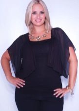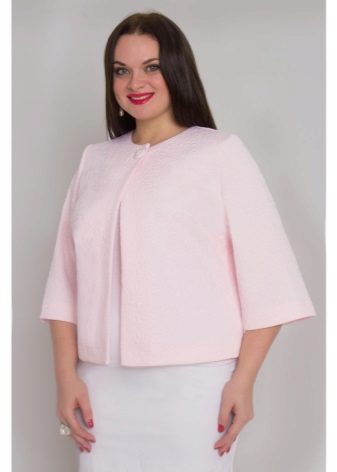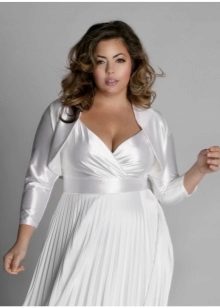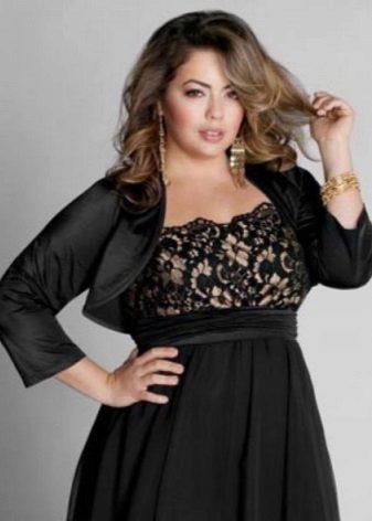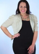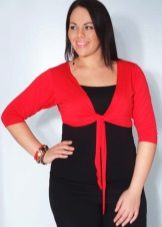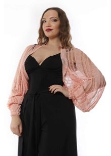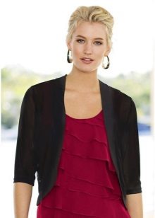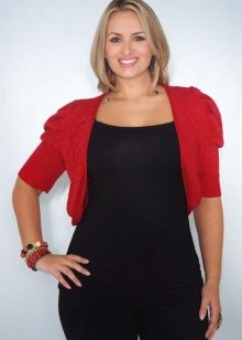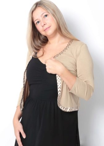 The main rule is to choose a bolero with sleeves - “three quarters” or long, as well as a reasonable approach to choosing the size. The bolero should not “dig into” the body, but at the same time it should not hang, giving extra volume.
